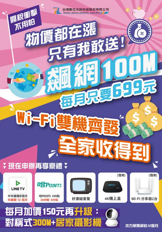 2.安裝設定費(新)安裝費者1500元,既有有線電視安裝網路安裝費500元,既有客戶轉本方案者異動費500元。